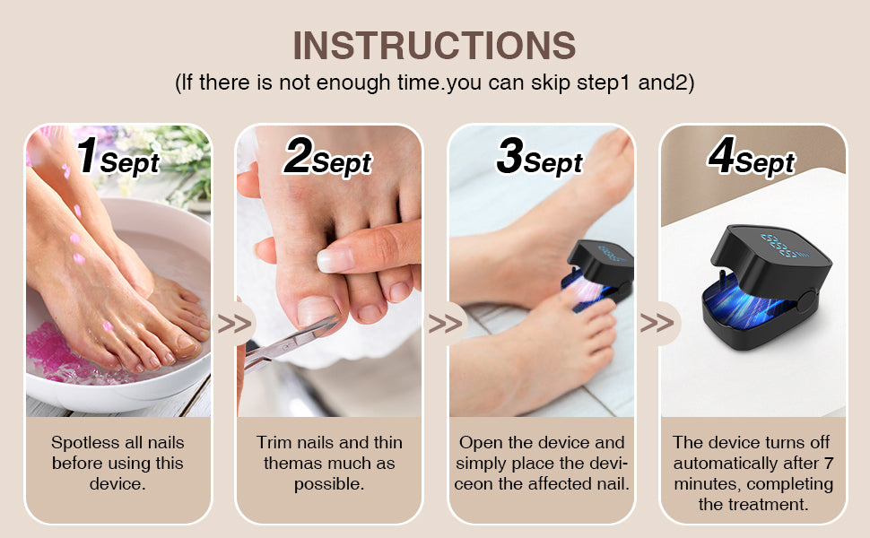 🔹 Emite luz láser de baja frecuencia que penetra la uña sin dolor.